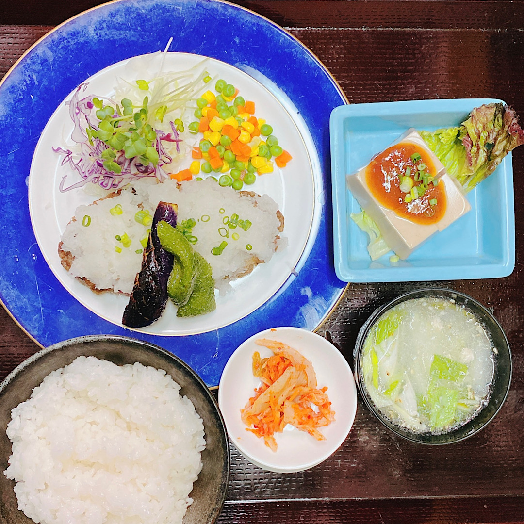 本日(9月19日)日替ランチ 1,500円 お知らせ 2025.09.19 茅ヶ崎焼肉屋<赤とんがらし>日替わり定食 みぞれハンバーグ(大根おろし添え) コールスロー添え 胡麻豆腐 ライス・スープ・キムチ