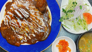茅ヶ崎焼肉屋<赤とんがらし>日替わり定食オムシチュー(オムライスのビーフシチューがけ)サラダスープ・…続きを読む