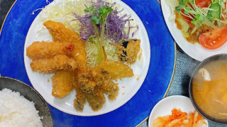 茅ヶ崎焼肉屋<赤とんがらし>日替わり定食シーフードミックスフライ(エビ・カキ・白身魚・野菜)コールス…続きを読む