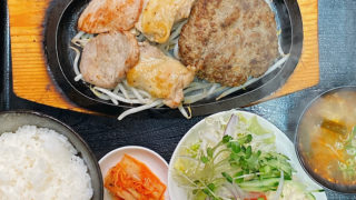 茅ヶ崎焼肉屋<赤とんがらし>日替わり定食ハンバーグカレーサラダスープ・キムチ
