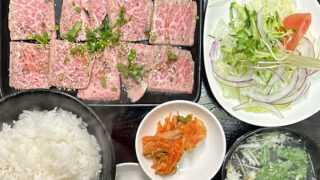 茅ヶ崎焼肉屋<赤とんがらし>日替わり定食塩カルビ焼肉サラダライス・スープ・キムチ