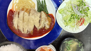 茅ヶ崎焼肉屋<赤とんがらし>日替わり定食イタリアンポークカツ(ポークカツチーズ焼き トマトソース)パ…続きを読む