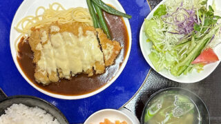 茅ヶ崎焼肉屋<赤とんがらし>日替わり定食豚ロースカツ チーズ焼きサラダライス・スープ・キムチ