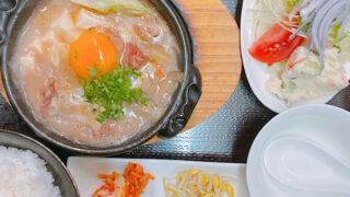 茅ヶ崎焼肉屋<赤とんがらし>日替わり定食牛タンの煮込み鍋サラダライス・キムチ・ナムル